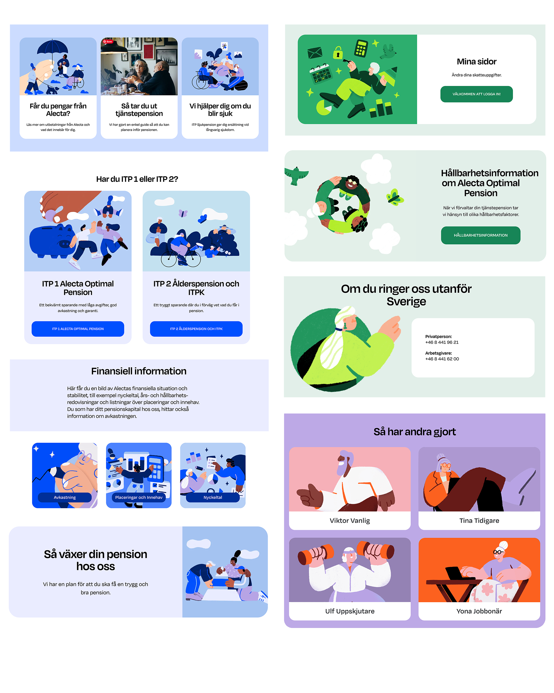 The illustrations bring a more human touch to the site, making a complex, information-heavy subject feel approachable and engaging while helping Alecta stand out.
