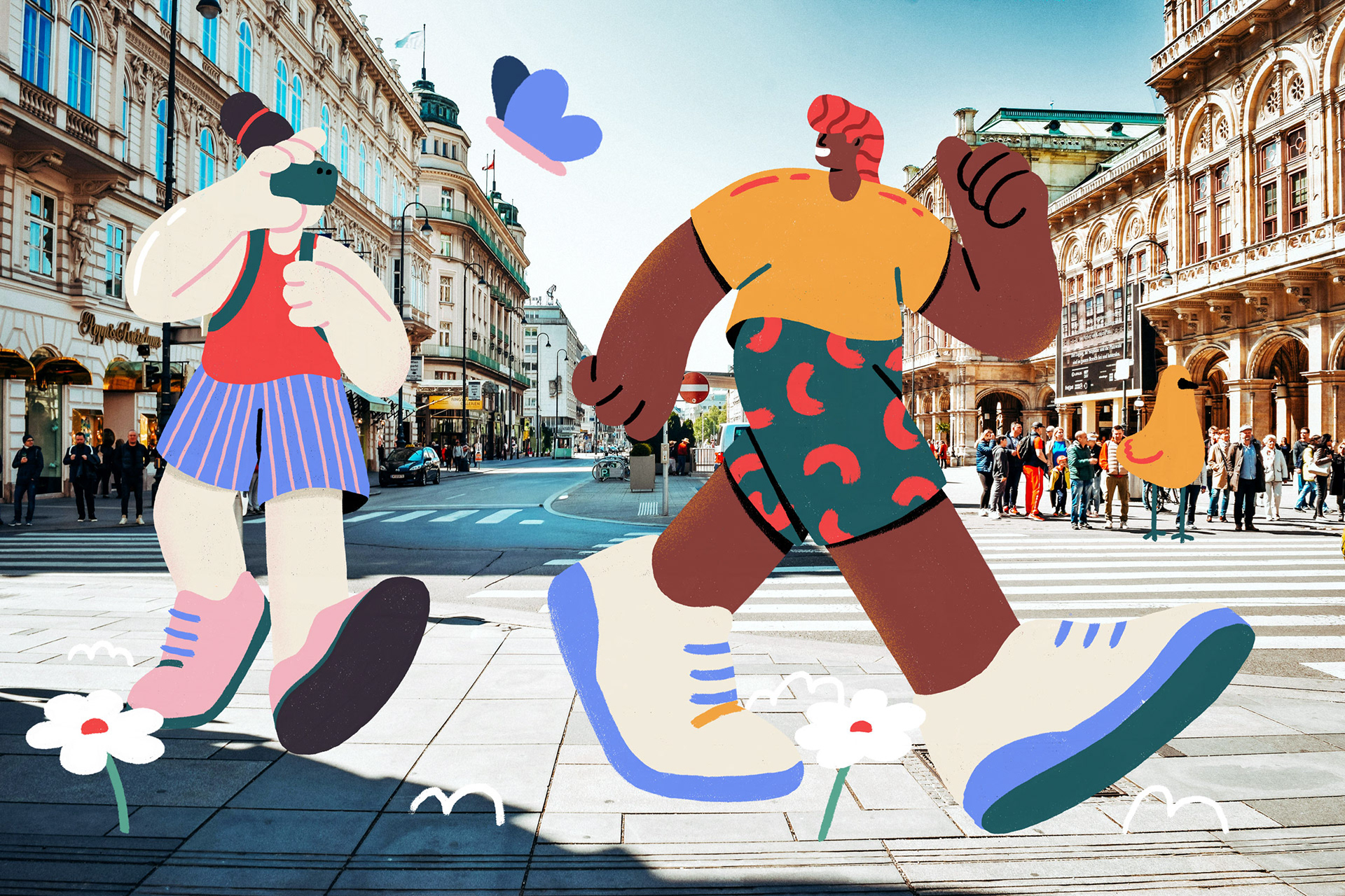 Along the way, I created an illustration for every stop we made. This mix of photography and illustration was something I hadn’t tried before, and it turned out to be a playful way of documenting the trip. The characters seemed to take on a life of their own, blending into the cities and landscapes we passed through.